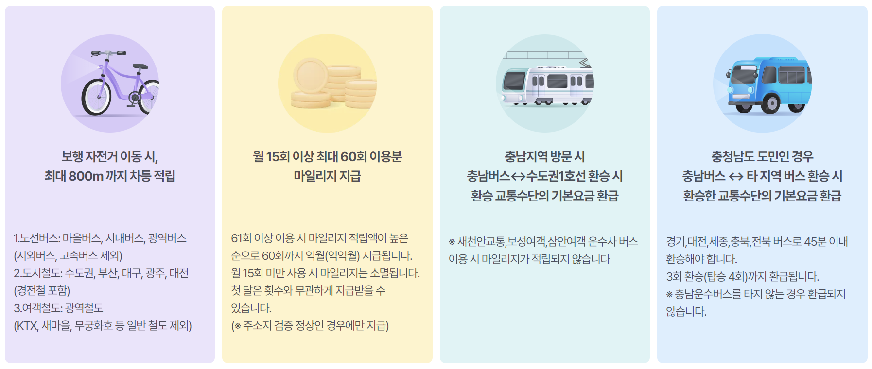 2. 매월 1일~ 말일까지 대중교통 15회 미만 이용시 당월 적립 금액은 소멸됩니다.